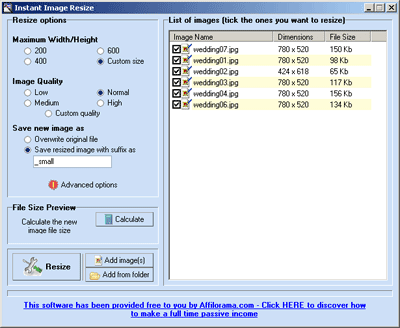 Guess what this one does? (We’re pretty practical people here. We name things as we see them. It was either “Instant Image Resize” or “Resizeorama”.) This one has a few more options than Instant Corners but it’s still pretty simple, and it’s a great way to resize your images, either individually or in bulk.